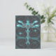 Aquamarin, grau, gläserne Libelle mit Sternen Postkarte
