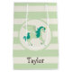 Cooles, Retro, buntes Kids Aquamarin & Light Green Unicorn Design auf weißen Streifen, gestreiftes Muster mit Vintagem Gefühl. Perfektes Geschenk für Baby, Kleinkind, Kinder, Kinder, Jugendliche oder Erwachsene! Das Design wird durch Hinzufügen eines Kindernamens oder benutzerdefinierten Textes personalisiert. Besuchen Sie unseren Shop, Birthday Party House, für mehr große personalisierbare Jungen und Mädchen Produkte und Zimmer Dekoration!