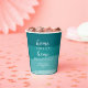 Aquamarine Ombre Farbpalette modern, elegant Design neue Zuhause häuserwärmende Party Papier Becher. Ideal, um Ihre neue Zuhause-Feier zu feiern. Fühlen Sie sich frei, um Ihre bewegte Nachricht anpassen. Melden Sie uns für passende Party Dekorationen, Geschirr, danke Ihnen Karten Anpassung.