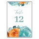 Aquamarin Orange Boho Tischnummer