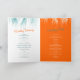 Aquamarines Wassergymnastik-Grün und helles tropisches Orangenpalmenprogramm an der Fassade Aquarellkunst Hochzeitsfeier. Ein wunderschönes Hochzeitsprogramm, das sich ideal für eine aquamarine Hochzeit im tropischen oder subtropischen Stil oder für eine Hochzeit im Palmenstrand eignet. Personalisieren Sie Ihre persönlichen Daten. Einladungen und andere passende Artikel stehen zur Verfügung. © Original palm fronds watercolor painting Art and design by Sarah Trett for www.mylittleedenweddings.com