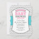 Aquamarin Pink Gray Zickzack Babydusche Einladung