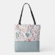 Dieses lustige aquamarine, rote und rosa Herz und Blume Valentinstag Muster ist perfekt für eine vollwertige Tasche mit Print Tote. Das untere Drittel (ca. 10 cm) ist ein koordinierender Feststoff mit einem dünnen Streifen. Tragetaschen sind ein lustiges saisonales ästhetisches Accessoire. Großes kleine Geschenk auch! AI unterstützte Grafik, die mit kommerziellem Einsatz erworben wurde. Kunstwerk: DreamCafeArt