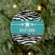 Das trendige und moderne Sassy Star Zebra Ornament besticht durch einen schicken schwarz-weißen Zebrahintergrund und einen kühnen türkisfarbenen Rahmen mit einem lustigen Sternmotiv. Dieses mädchenhafte Design kann mit dem personalisierten Text Ihrer Wahl angepasst werden. Klicken Sie auf "Anpassen", um weitere Personalisierungsoptionen zu erhalten.