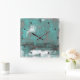 Aquamarin Schwarz-weiß Grau abstrakt Quadratische Wanduhr