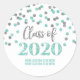Individuelle Name-Klasse von 2020 Abschluss Aufkleber mit silber und aquamarinen Konfetti Muster.