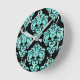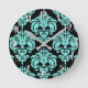 Aquamarin Türkis und schwarzer Damast Moderne Pers Runde Wanduhr
