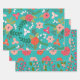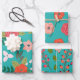 Aquamarin und Coral Berry Pattern Geschenkpapier Set