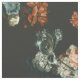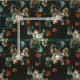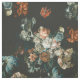 Schönes dunkles Blumenmuster mit aquamarinen, rostfarbenen und pfirsichfarbenen Blumenmustern, die auf einem alten niederländischen Gemälde basieren.