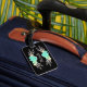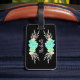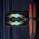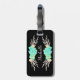 Gepäckanhänger mit einem benutzerdefinierten Monogramm und aquamarinen und silbernen Blume