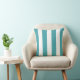 Aquamarine weiße Streifen auf einem Kissen mit Designerkissen. Die Kissen mit gestreiftem Wurf sind sehr akzentuiert, sowohl gemusterte als auch kräftige Sofas, Stühle und Raumgestaltung stehen im Vordergrund. Ideal für Hausboote, Wohnzimmer, Schlafzimmer, Hütten, Strandhäuser und Kinderzimmer. Wählen Sie aus Baumwollkissen in 16" x 16" oder 20x20 Quadrat, oder 13 x 21 Lumbalkissen, oder einer dieser Größen in Polyester. Unsere Kissen sehen in jedem Zimmer gut aus, vom Schlafzimmer bis zum Wohnzimmer, Familienzimmer oder Vorhalle mit Schaukel! Produziert von nachhaltig beschäftigten Single Müttern in den USA, trägt Ihr maßgeschneiderter Kissenkauf dazu bei, den Teufelskreis von Armut für Single Mütter und ihre Kinder zu durchbrechen, während es in Ihrer Zuhause großartig aussieht! Erstellt von Scarebaby Design und unterstützt durch die Zazzle Garantie.