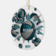 Dieses Basketball-Keramik-Ornament für Mädchen zeichnet sich durch eine "Explosion" verschiedener Basketballgrößen mit abwechselnden aquamarinen und grauen Farbpaneelen und aquamarinen, grauen und weißen Sternformen aus - angepasst an Spielername oder Fantasiename vorne und hinten - katz_d_zynes