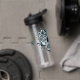 Die Basketballflasche des coolen Mädchens weist eine "Explosion" von aquamarinen und weißen Basketballkörben in unterschiedlicher Größe auf, sowie graue und aquamarine Sternenformen - nach Namen, Monogramm und Jerseynummer des Athleten - von katz_d_zynes