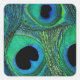 Aquamarine blaue Pfauenfederkleber / Siegel Quadratischer Aufkleber