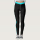 Custom Colors - Sports Aquamarin Blue Side Stripe Schwarze Leggings - MIGNED Design - oder wählen / Fügen Sie Ihre Streifen und Leggings Farben !