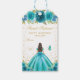 Dieses elegante und glamouröse 16 . Geburtstag Geburtstagsgeschenk-Tag kann mit einem Namen personalisiert werden. Das Design besticht durch eine wunderschöne Prinzessin mit brünettem Haar und feiner Haut in einem aquamarinen blauen Ballkleid. Der Text kombiniert handgeschriebene Skripte mit modernen serifenlosen Schriftart für ein elegantes und raffiniertes Aussehen. Die Blumenarrangements, Schmetterlinge und Goldkonfetti bilden die perfekte Mischung aus rustikal und schick. Das ist ideal für Geschenke und Gastgeschenke. Grafiken von www.etsy.com/uk/shop/SunflowerDayLove