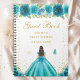 Dieses elegante und glamouröse 16 . Geburtstag Gästebuch besticht durch eine hübsche Prinzessin mit brünettem Haar und feiner Haut in einem aquamarinen blauen Ballkleid. Der Text kombiniert handgeschriebene Skripte mit modernen serifenlosen Schriftart für ein elegantes und raffiniertes Aussehen. Die Blumenarrangements, Schmetterlinge und Goldkonfetti bilden die perfekte Mischung aus rustikal und schick. Grafiken von www.etsy.com/uk/shop/SunflowerDayLove