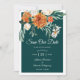 Aquamarin gebrannte Orange elegante Herbstblütenhochzeit retten das Datum.