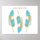 Aquamarine, creme und grüne Federn mit DIY-Namen Poster