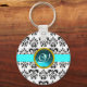 AQUAMARINE DAMASK MONOGRAM, blaues Turquase Schlüsselanhänger