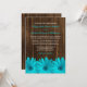 Eine landesbezogene Hochzeitseinladung mit aquamarinen blauen Gängen auf dunkelbraunem Holzboden. Ideal für eine Hochzeit im Western oder eine Hochzeit im Freien.