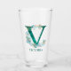 Aquamarine Farbe und Goldmonogramm Letter V Glas