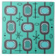 Diese atomare Ära im Stil der modernen abstrakten Kunst Mitte des Jahrhunderts hat Kreise, Linien und sputnik Sternexplosionen. Für Liebhaber von kitschigen Designs aus der Mitte des Jahrhunderts. Aquamarine türkis blau grün.