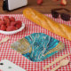Aquamarine Fluss Abstrakt Mosaik Kunst, Dichtung u Pappteller
