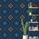 Verwandeln Sie Ihren Wohnraum mit unserer einzigartigen, schalen und klebhaften Tapete. Inspiriert von den komplizierten Mustern in der Kunst des Nahen Ostens, verfügt dieses Tapete über ein faszinierendes geometrisches Motiv. Der tiefblaue marineblaue Hintergrund Set die Bühne für eine Sinfonie hellblauer Diamantformen, die jeweils einen achtzackigen Stern in aquamariner Form enthalten. Goldene gelbe Akzente fügen eine Touch von Opulenz hinzu und schaffen ein harmonisches Gleichgewicht. Der Gittereffekt, gebildet von Ketten aus goldenen Punkten und kleineren aquamarinen Kreisen, erinnert an die Handwerkskunst historischer Epochen wie byzantinischer und osmanischer Imperien. Es ist eine Feier zeitloser Eleganz. Tiefe Blues ruft Gelassenheit und Tiefe hervor, während die Pop von Gold und aquamarinen eine lebendige Atmosphäre schaffen, ohne die Sinne zu überwältigen. Das Ergebnis? Eine raffinierte Palette, die jedes Interieur ergänzt.