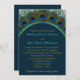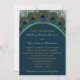 Aquamarine, goldene Pfauenfedern zum Hochzeitsempf Einladung