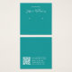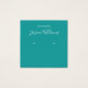 Eine minimalistisch aquamarine Ohrring-Display-Karte: Nur weißer Text auf aquamarinem Hintergrund, wobei die Ohrring-Plätze durch zwei sehr kleine Kreise angezeigt werden. Der Name ist in einem modernen Skript geschrieben. Es hat einen QR-Kabeljau auf der Rückseite, im unteren Teil, zum verlassen der Info.