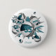Dieser Basketballknopf zeigt eine "Explosion" von aquamarinen, grauen und weißen Basketballkörben unterschiedlicher Größe sowie graue, aquamarine und weiße Sternformen - ein Muster von winzigen weißen Polka-Punkten bedeckt den aquamarinen Stern - angepasst an den Namen und die Jerseynummer des Athleten - von katz_d_zynes