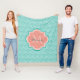 Eine schicke aquamarine grüne Kunst Deko Fisch-Maßstab Vlies Decke mit einem hellrosa Quatrefolien Abzeichen können Sie personalisieren, indem Sie einfach Ihre Monogramm und Namen hinzufügen. Dies ist Teil der Arcadia Fishcale Blooming Dahlia Monogram Spring Collection. Wählen Sie aus 3 Größen.