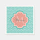 Chic aquamarine grüne Deko Fisch-Maßstab Papier Servietten mit einem hellrosa Quarrefolien Abzeichen können Sie personalisieren, indem Sie einfach Ihre Monogramm und Namen. Dies ist Teil der Arcadia Fishcale Blooming Dahlia Monogram Spring Collection.