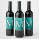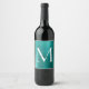 Modern Glam Aquamarin Green Monogram Girly Script Metallic Steel Wine Label
