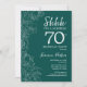 Aquamarine grüne Überraschung 70. Geburtstag Einladung. Minimalistisches modernes feminines Design mit botanischen Akzenten und Typografie-Script-Schriftart. Einfache florale Einladungskarte perfekt für eine stilvolle weibliche Überraschung am Tag.
