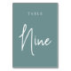 Aquamarine, handgescripte Table NINE Tischnummer