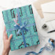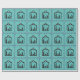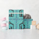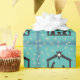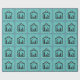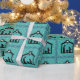 Dieses Ausrüstungsbeschreibungen der Nativity mit einer Silhouette der heiligen Familie im Stall. Mary und Joseph schauen über Baby Jesus in der Krippe. Der Hintergrund ist mit dem Wirbel und Sternen ein festliches aquamarines, die den Nativity umgeben.