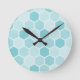 Aquamarine Hexagons Runde Wanduhr