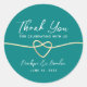 Einfache, elegante, minimalistische aquamarine Hochzeit Dankeschön Aufkleber, mit goldenem Seil Herz und moderne handgeschriebene Kalligraphie-Skript.
