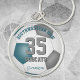 Dieser Schlüsselanhänger zum Thema Fußball für Jungen und Mädchen zeichnet sich durch eine einfache Fußball-Grafik aus - mit den typisch schwarzen Tafeln aquamarin und grau aufgefärbt - auf der Sie den Namen und die Jersey-Nummer des Athleten sowie den Namen der Schule & des Maskottchens in farbenabgestimmten Farben leicht anpassen können - durch katz_d_zynes