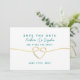 Einfache, elegante, minimalistische aquamarine und weiße Hochzeit Save the Date Invitation mit einfachem handgeschriebenem Kalligraphieskript und goldenem Seil Herz.