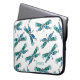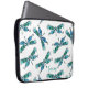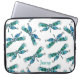 Hübscher personalisierter Laptop-Ärmel mit aquamarinen, blauen, grünen und schwarzen Libellen auf weißem Hintergrund. Personalisieren Sie den aquamarinen Text für sich selbst oder als schöne Geschenkidee für sie.
