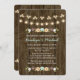 Dieses Design ist Teil einer herbstblumigen rustikalen Lichterkette Hochzeitsreise Set in aquamarinen Minzblau Aqua, grün, braun, weiß, gelb und braun mit einem schönen Holzhintergrund, der an einen Holzzaun oder ein Fass erinnert. Ein Herbstkranz aus Eicheln, Beeren, Sonnenblumen, Tulpenblüten und weißen Blüten sitzt auf einem grünen Ast. Die Rückseite des Einladens kann mit den Initialen der Braut personalisiert werden und Bräutigam in der geschnitzten Baum aussehen Herzdesign. Ideal für einen Herbst im Freien, Nachtzeit, Land, Bauernhof, Barkeeper oder ländliche chic Themenpaare Hochzeitsdusche Verlobung. Die zauberhaften Tinkle- und Feenleuchten mit einem knackigen Effekt sehen hell, süß, warm und einladend aus. Artwork © Chrissy H. Studios, LLC. Alle Rechte vorbehalten.