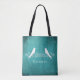 Tragen Sie Ihre Sachen stilvoll, während Sie unterwegs sind mit einer Aquamarinen Lovebirds Floral Vine Personalisiert Tote Tasche. Die Tote-Tasche-Gestaltung ist mit einem aquamarinen Grunge-Hintergrund mit einer Blumenrebe und einem Paar ruhender Vögel geschmückt. Personalisieren Sie mit Ihrem eigenen Namen oder erstellen Sie ein einzigartiges Geschenk für Freunde oder Familie. Weitere Artikel sind auch mit diesem Design erhältlich. Bitte kontaktieren Sie mich direkt für Hilfe bei der Personalisierung.