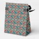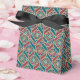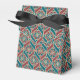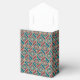 Eine schicke Zelt-Gefallen-Box mit einem ethnischen Muster mit Blume-Motiven und Köchen, in Aquamarin und Maroon, in Beige umrissen. Als Teil der Posh & Painterly 'Boho Bazaar' Kollektion kann dieses Muster leicht angepasst werden, indem die Richtung oder der Maßstab der Musterfliese für ein völlig anderes Aussehen geändert werden.