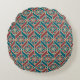 Ein schicker Rundkissen oder Kissen, mit einem ethnischen Muster mit Blume Motifs und Chevrons, in Aquamarin und Maroon, in Beige umrissen. Als Teil der Posh & Painterly 'Boho Bazaar' Kollektion kann dieses Muster leicht angepasst werden, indem die Richtung oder der Maßstab der Musterfliese für ein völlig anderes Aussehen geändert werden.