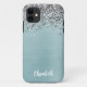 Girly aqua aquamarin blaues, gebürstetes Metall mit silberfarbenem Glitzer schmückt dieses iPhone Gehäuse. Entworfen für Sie von Blackbery Boulevard.