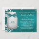 Ein wunderschönes, grün-blau-türkisfarbenes Aqua-aquamarinen Mauerwein-Glas Paare Polterabend Einladung, dass scheint es glüht. Fügen Sie die Initialen und/oder Monogramm der Braut und Bräutigam in das Glas mit einem tiefblauen und weißen Bänder-Look Design. Ein subtil Vintager Damast-Antiquitätenrahmen ergänzt dieses rustikale und dennoch elegante Design mit zauberhaften Kaminen innen und außen. Diese Einladungen sind schön für eine Nacht, Barnyard, Bauernhof oder Land-Themendusche oder Verlobung Party. Kunstwerk © Chrissy H. Studios, LLC.Alle Rechte vorbehalten.