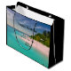 Gift bag with a beautiful photograph. A scenic tropical beach with aquamarine water and a white sandy beach with a lush forest in the back.